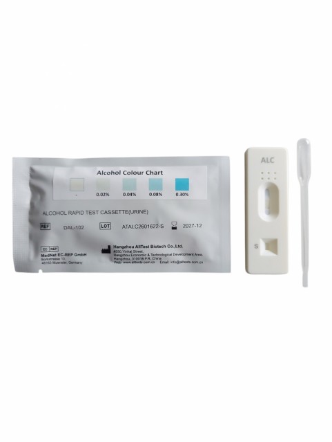 Hurtigtest for alkohol i urin. Rask og sikker hurtigtest. Sporer alkohol i % i urinen fra 2-12 timer. Kun for profesjonell bruker og helsepersonell.